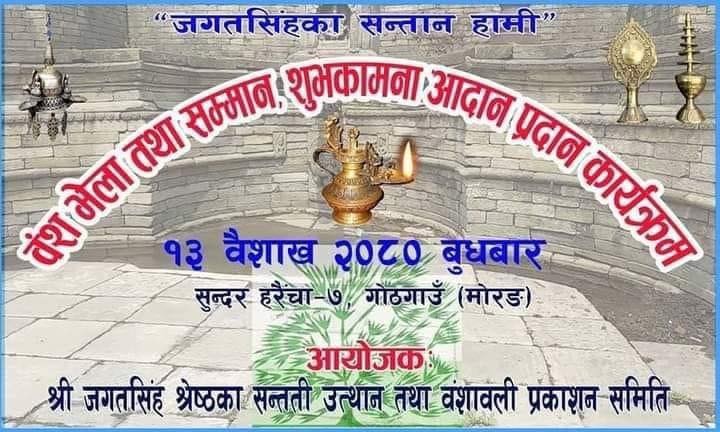 प्रिय मान्यजन दाजुभाइहरू, तपाईंहरूलाई हाम्रो उच्चाकांक्षी र गर्वसहित भनाइ गर्दछु, यो हाम्रो श्रेष्ठ (चौधरी) समुदायको अध्यक्षको रूपमा आफ्नो भनाइ पनि हो। हाम्रो समुदाय नेवार समुदायको भित्र सांस्कृतिक, इतिहास, र पहिचानको एक दीपक को रूपमा छ। 'श...